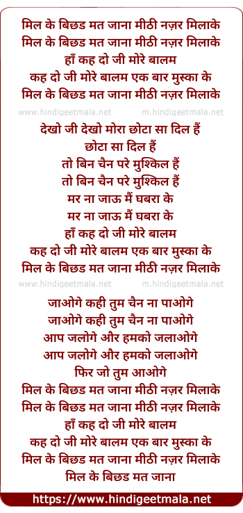 Lyrics of Mil Ke Bichad Mat Jana - मिल के बिछड मत जाना