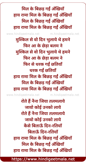 Lyrics of Mil Ke Bichhad Gayi Ankhiya - मिल के बिछड़ गईं अँखियाँ