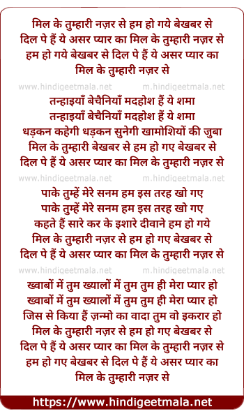 Lyrics of Mil Ke Tumhaari Nazar Se Hum Ho Gaye Bekhabar Se - मिल के तुम्हारी नजर से हम हो गये बेखबर से