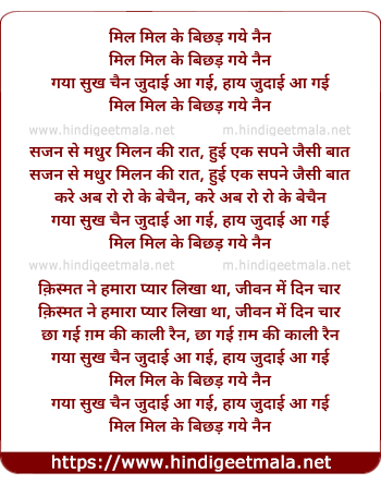 Lyrics of Mil Mil Ke Bichhad Gaye Nain - मिल मिल के बिछड़ गये नैन