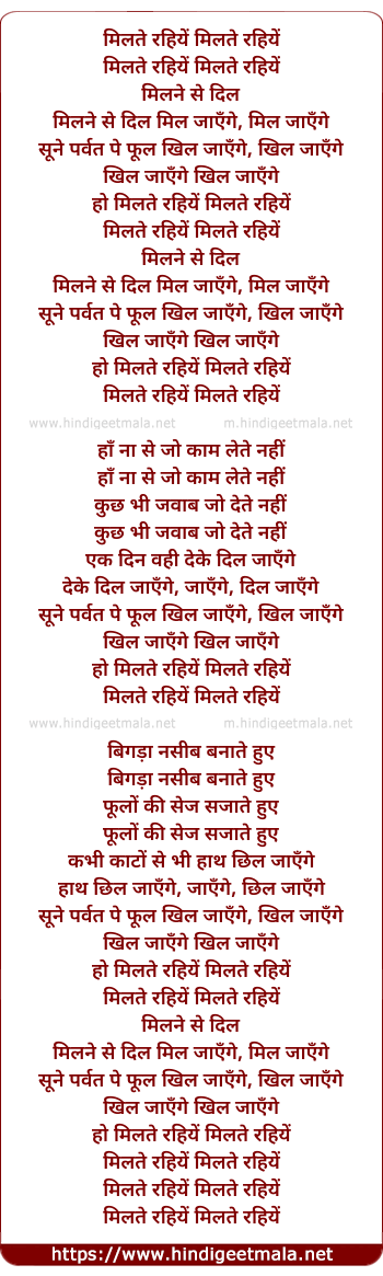 Poetic Translation - Lyrics of Milte Rahiye - मिलते रहियें