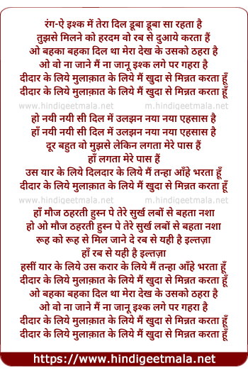rang-e ishq me tera dil duba duba sa rahta hai