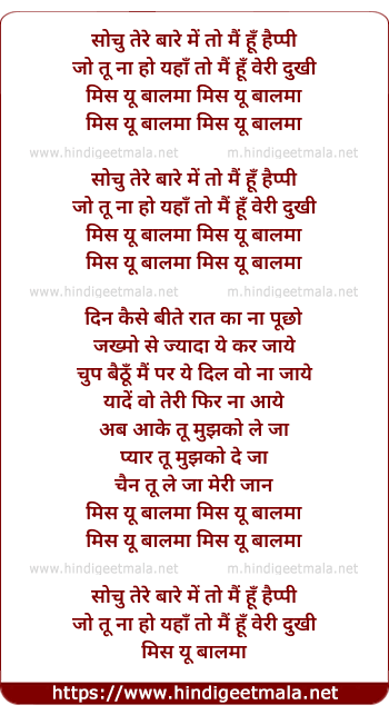 miss you balma sochu tere bare mein