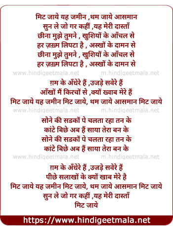 Lyrics of Mit Jaaye Ye Jamin