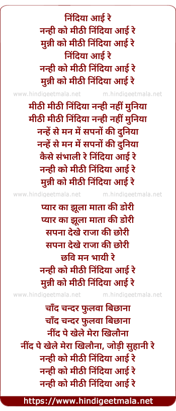 Lyrics of Mithi Nindiya Aayi Re - मीठी निंदिया आई रे