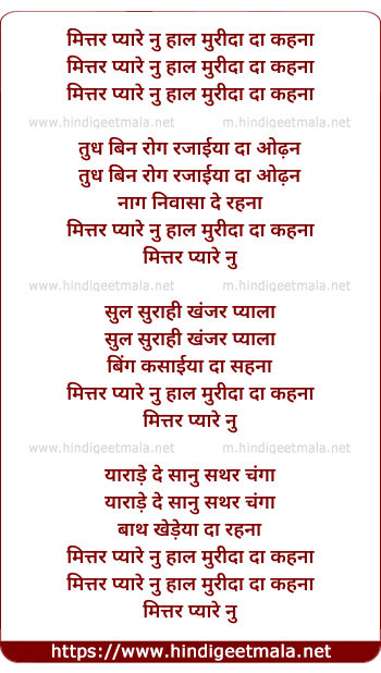 Lyrics of Mittar Pyare Nu (Male) - मित्तर प्यारे नु हाल मुरीदा दा कहना