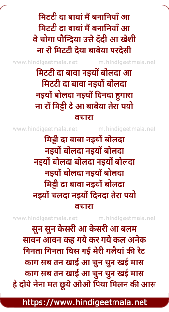 Lyrics of Mitti Daa Bawa - मिटटी दा बावां