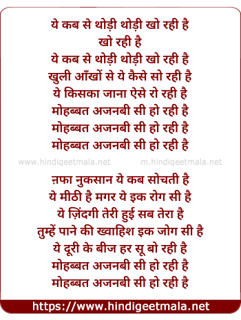Lyrics of Mohabbat Ajnabee - मोहब्बत अजनबी