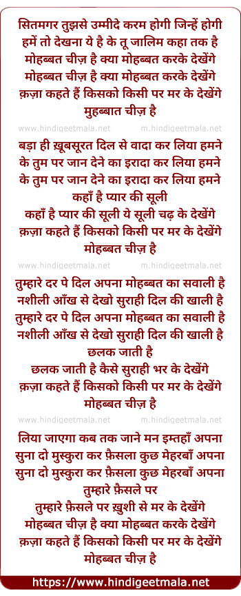 Lyrics of Mohabbat Chiz Hai Kya - मोहब्बत चीज़ है क्या