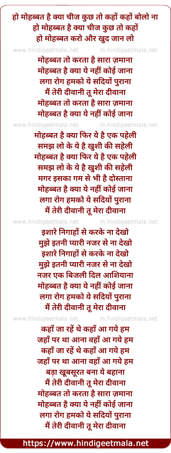 Lyrics of Mohabbat Hai Kya Cheej Kuchh Toh Kaho - मोहब्बत है क्या चीज कुछ तो कहों