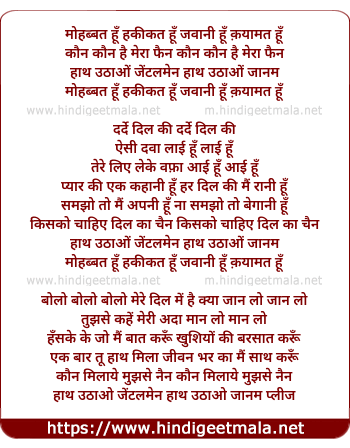 Lyrics of Mohabbat Hu Haqiqat Hu - मोहब्बत हूँ हकीकत हूँ