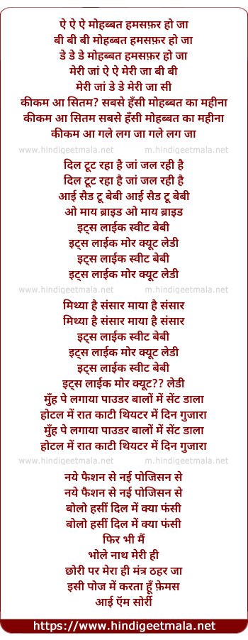 Lyrics of Mohabbat Humsafar Ho Ja - मोहब्बत हमसफ़र हो जा