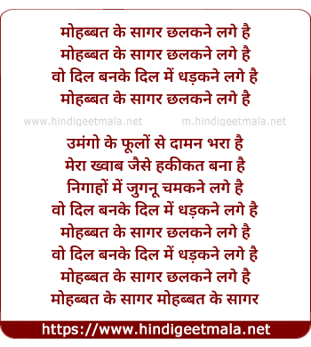 Lyrics of Mohabbat Ke Saagar - मोहब्बत के सागर छलकने लगे है