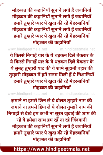 Lyrics of Mohabbat Ki Kahaniyan - मोहब्बत की कहानियाँ