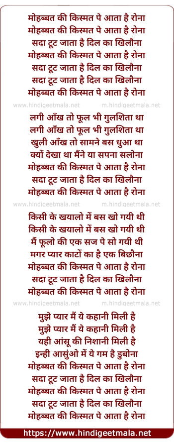 Lyrics of Mohabbat Ki Kismat Pe Aata Hai Rona - मोहब्बत की किस्मत पे आता है रोना