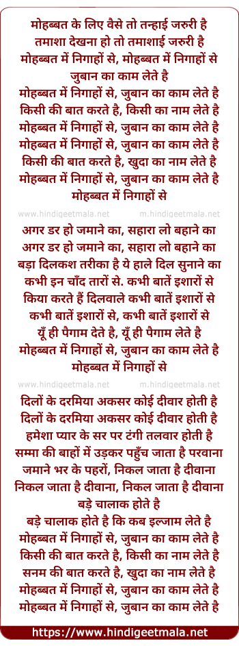 Lyrics of Mohabbat Mein Nigaaho Se Jubaan Ka Kaam Lete Hai - मोहब्बत में निगाहों से, जुबान का काम लेते है
