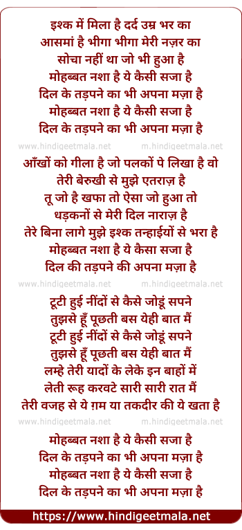Lyrics of Mohabbat Nasha Hai - मोहब्बत नशा है