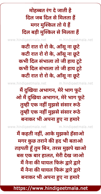 Lyrics of Mohabbat Rang De Jati Hai - मोहब्बत रंग दे जाती है