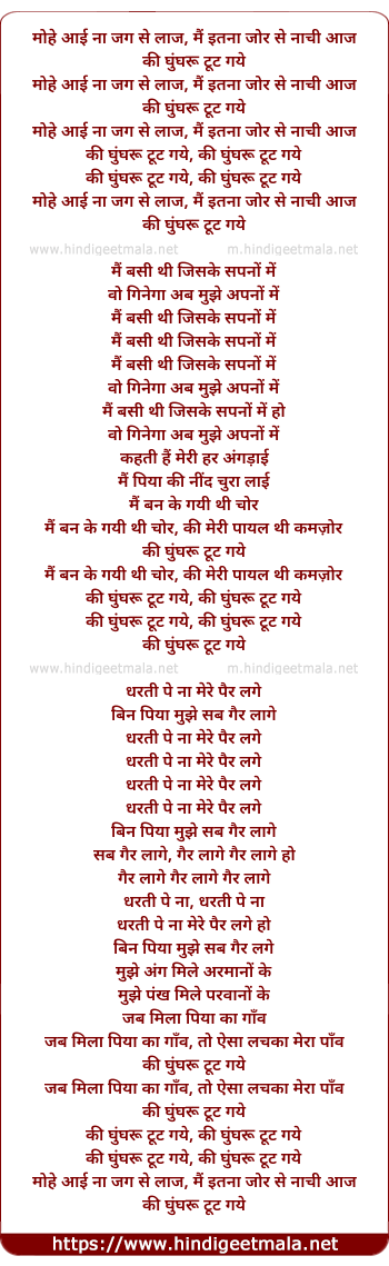 mohe aayi naa jag se laj, main itna jor se nachi aaj