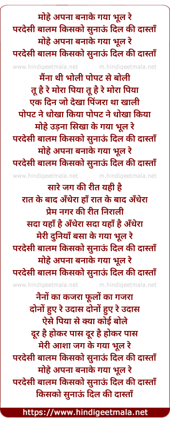 Lyrics of Mohe Apna Bana Ke Gaya Bhul Re - मोहे अपना बनाके गया भूल रे