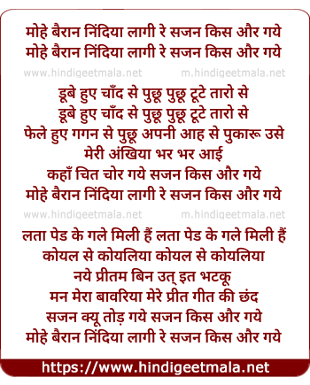 mohe bairan nindiya lagi re sajan kis aur gaye