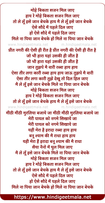 Lyrics of Mohe Bikata Sajan Mil Jaye To Le Lu - मोहे बिकता सजन मिल जाएतो ले लु