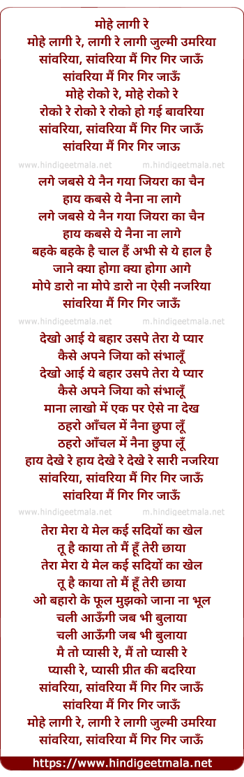 Lyrics of Mohe Laagi Re Zulmi Umariya Sawariya - मोहे लागी रे जुल्मी उमरिया सांवरिया