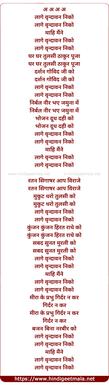 Lyrics of Mohe Lage Vrindavan Niko