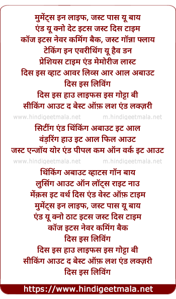 Lyrics of Moments In Life, Just Pass You By - मुमेंट्स इन लाइफ, जस्ट पास यू बाय