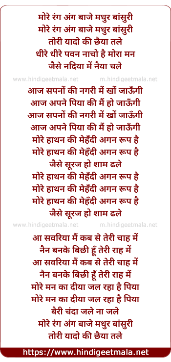 Lyrics of More Ang Ang - मोरे रंग अंग बाजे मधुर बांसुरी