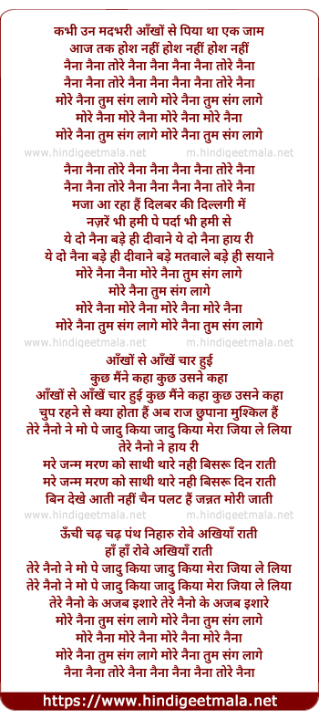 Lyrics of More Naina Tum Sang Laage - मोरे नैना तुम संग लागे