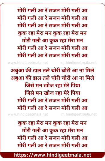 Lyrics of Mori Gali Aa Re Sajan - मोरी गली आ रे सजन