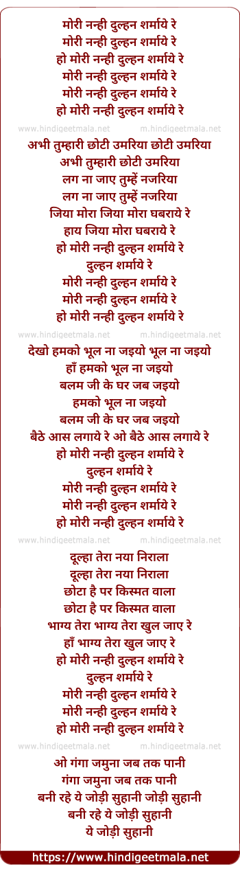 Lyrics of Mori Nanhi Dulhan Sharmaye Re - मोरी नन्ही दुल्हन शर्माये रे