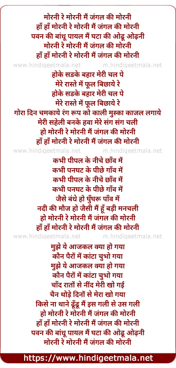 Lyrics of Morni Re Morni Mai Jungle Ki Morni - मोरनी रे मोरनी मैं जंगल की मोरनी