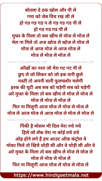 Lyrics of Muft Ki Mila Bas - मुफ्त की मिला बस