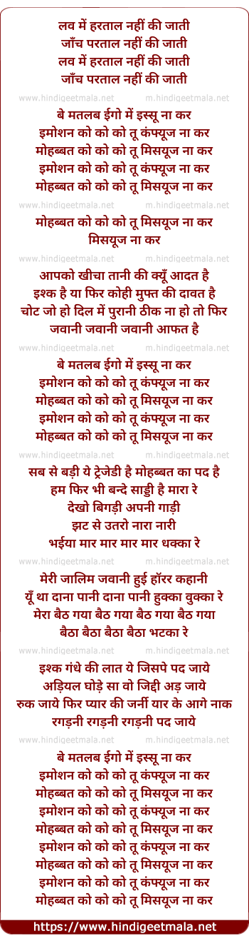 Lyrics of Muhabbat Ko Tu Misuse Na Kar - मोहब्बत को तू मिसयूज ना कर