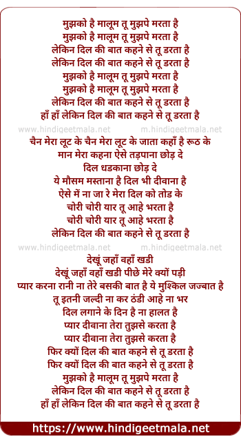 Lyrics of Mujhko Hai Maloom - मुझको है मालूम