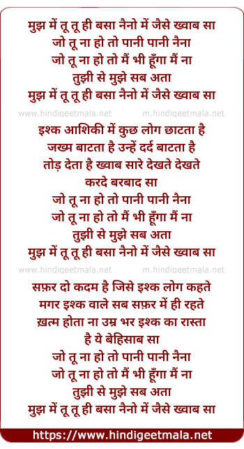 Lyrics of Mujh Me Tu Tu Hi Tu Basa - मुझ में तू तू ही तू बसा