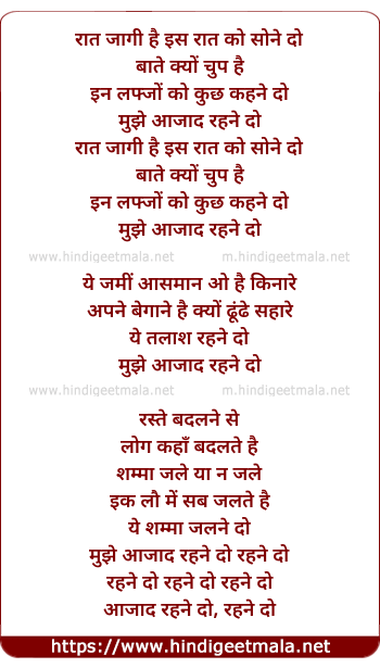 Lyrics of Mujhe Aazaad Rehane Do - मुझे आजाद रहने दो