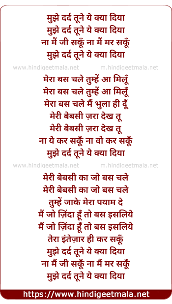 Lyrics of Mujhe Dard Tune Ye Kya Diya - मुझे दर्द तूने ये क्या दिया
