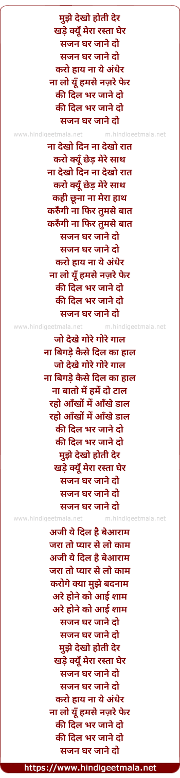Lyrics of Mujhe Dekho Hoti Der Khade Kyo Mera Rasta Gher - मुझे देखो होती देर खड़े क्यों मेरा रास्ता घर