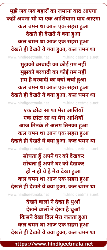 dekhate hi dekhate yeh kya huwa, kal chaman tha