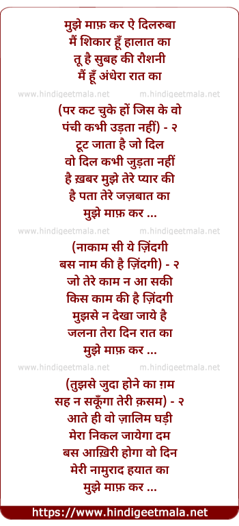 Lyrics of Mujhe Mere Yaar Kaa Didaar Chaahiye - मुझे माफ़ कर ऐ दिलरुबा