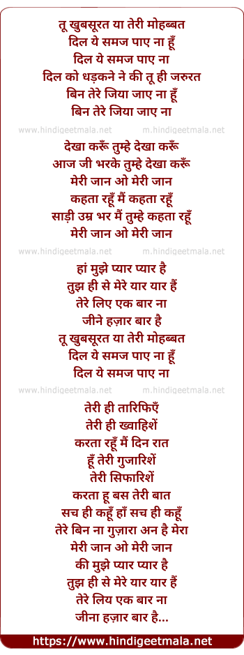 tu khubsurat ya teri mohabbat