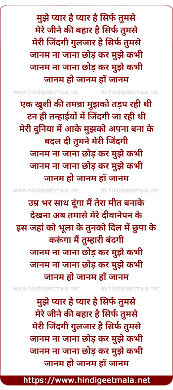 Lyrics of Mujhe Pyaar Hai Sirf Tumse - मुझे प्यार है सिर्फ तुमसे