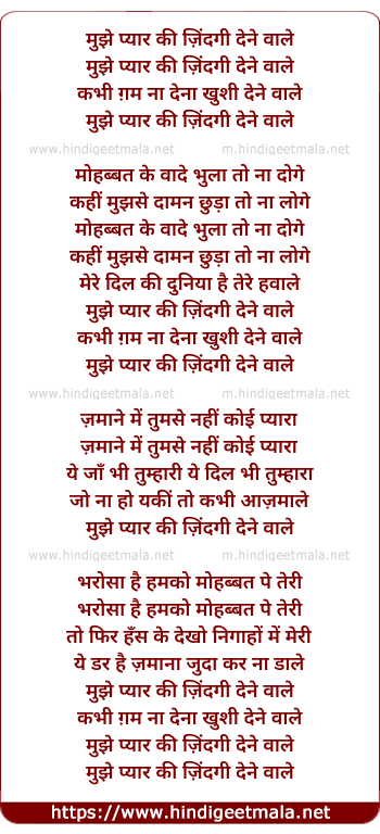 Lyrics of Mujhe Pyaar Ki Zindagi Dene Wale - मुझे प्यार की ज़िंदगी देने वाले