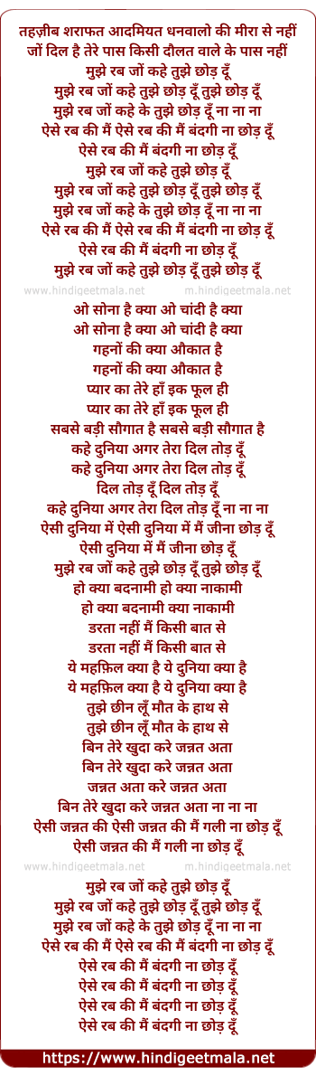 mujhe rab jo kahe ke tujhe chhod du na na na