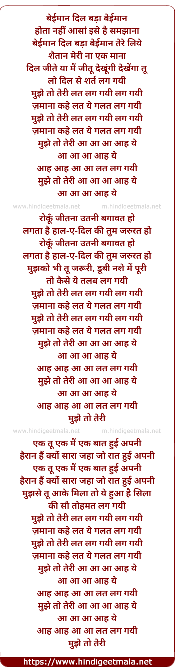 Lyrics of Mujhe To Teri Lat Lag Gayi Lag Gayi - मुझे तो तेरी लत लग गयी लग गयी