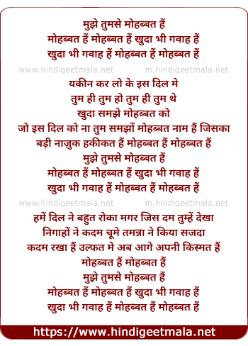 Lyrics of Mujhe Tumse Mohabbat Hai, Khuda Bhi Gavah Hai - मुझे तुमसे मोहब्बत हैं, खुदा भी गवाह हैं