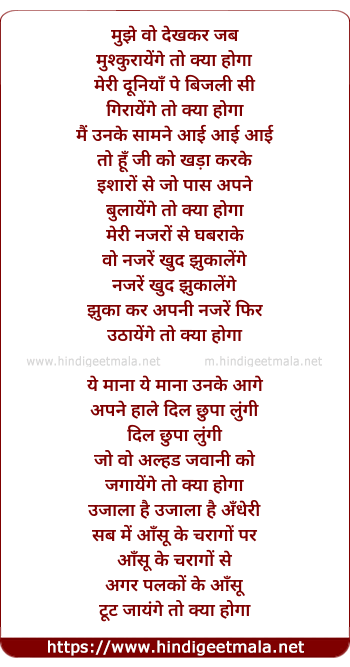 Lyrics of Mujhe Wo Dekh Kar Jab Muskurayenge To Kya Hoga - मुझे वो देखकर जब मुस्कुरायेंगे तो क्या होगा